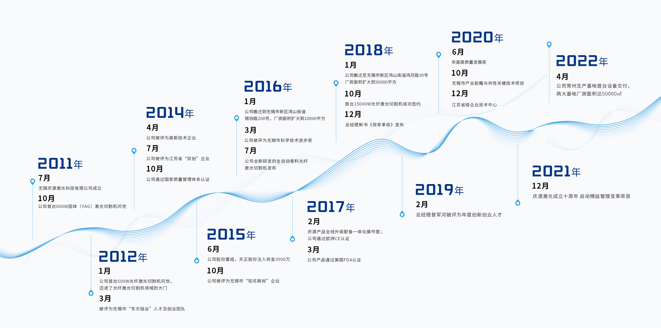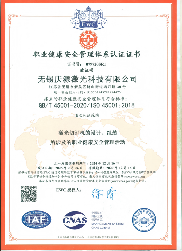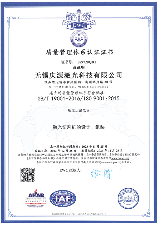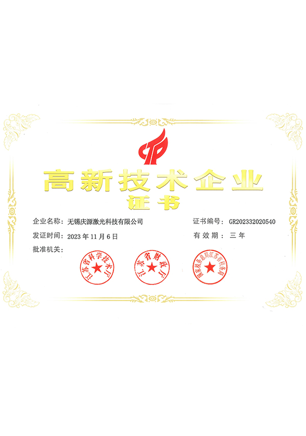 發展十多年來,慶源激光獲得數十項國家授權專利,獲得國家高新技術企業、江蘇省企業技術中心、江蘇省“雙創計劃”人才、江蘇省工程技術研究中心、江蘇省民營科技企業、無錫市專精特新小巨人企業、無錫市瞪羚企業等多項省市級榮譽。